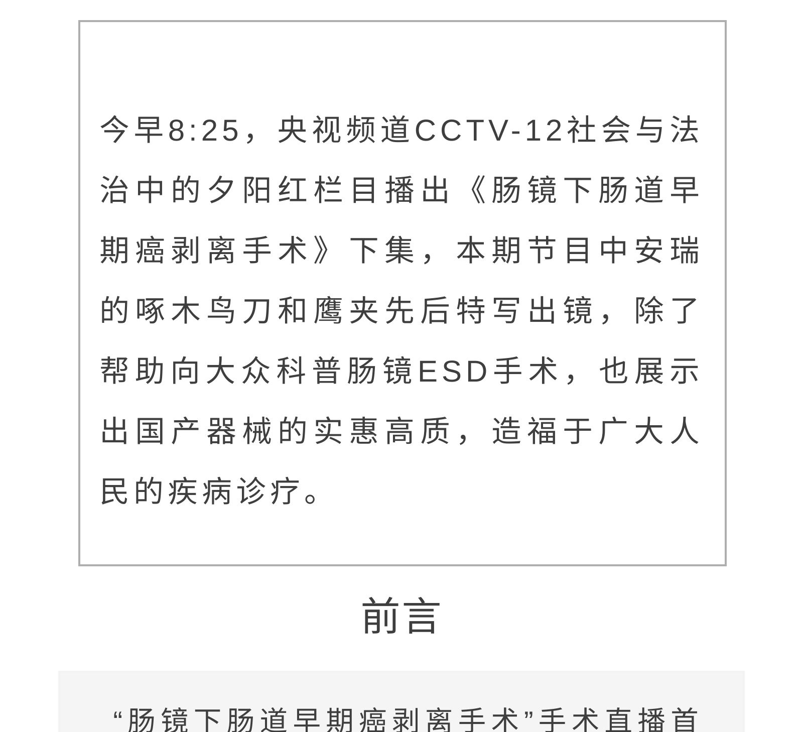 國產(chǎn)器械,實(shí)惠高質(zhì) | 安瑞助力央視《夕陽紅》欄目科普腸鏡ESD手術(shù)