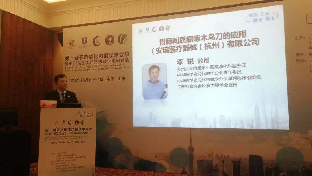 由鄒多武教授、劉楓教授主持,李銳教授講解的《胃腸間質瘤啄木鳥刀的應用》專題衛(wèi)星會在上海國際會議中心3G會議室開展,李銳教授用豐富的案例、詳實的數(shù)據(jù),為各位聽眾分享了對安瑞啄木鳥刀深刻的理解以及應用技巧。